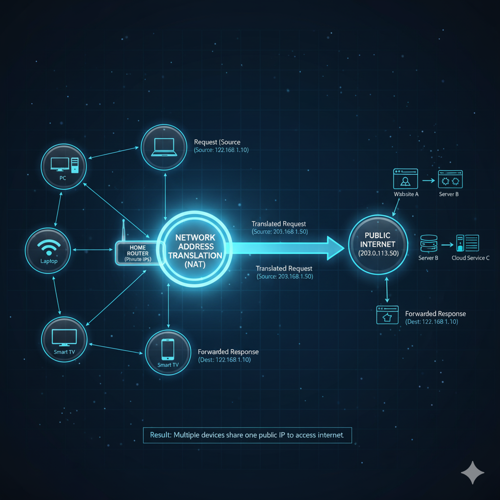 - NAT Enables Multiple Devices: One router can connect multiple devices to the internet using one public IP address.