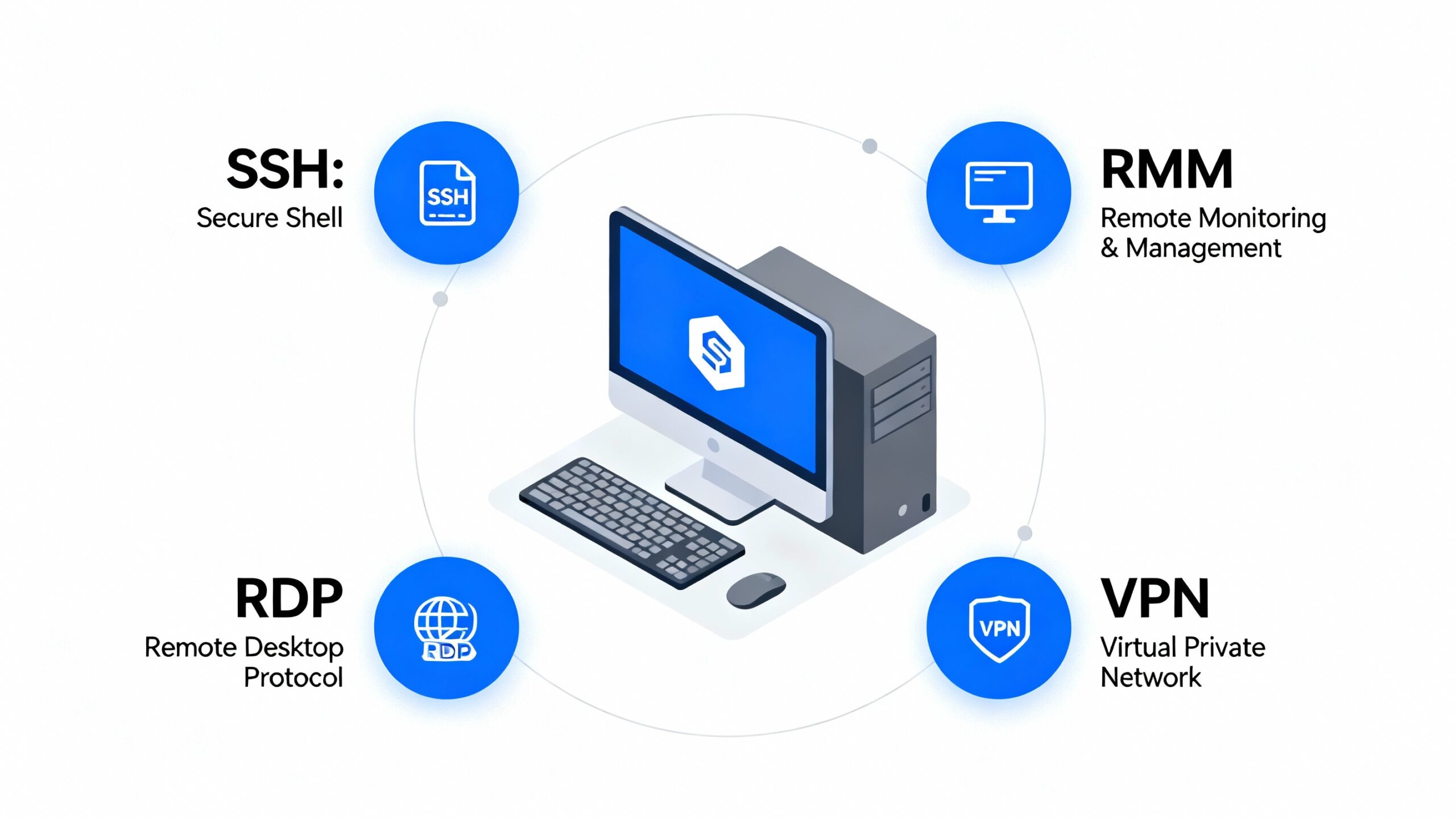 Unlike RDP and VPN, there are some types of remote access software that are typically used only by IT management and other computer support professionals. These remote applications help IT Support teams manage and monitor large networks more efficiently.