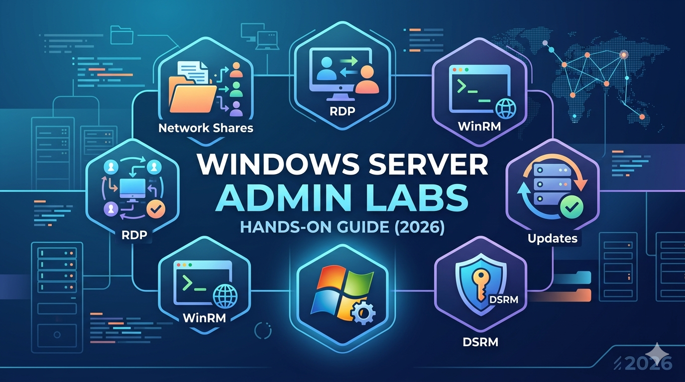 Windows Server Admin Labs: Network Shares, RDP, WinRM, Updates & DSRM — Hands-On Guide (2026)